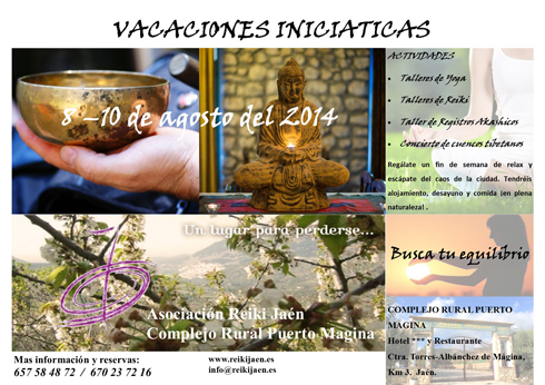 | 7, 8, 9 de noviembre | II Encuentro Reiki Jaén. Cañada de las Hazadillas. Todo un fin de semana de Reiki, Yoga, ChiKung, Senderismo, Meditación, Constelaciones Familiares,... |